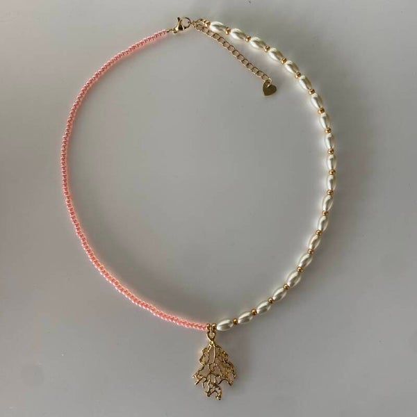 Miyuki parels van 3 mm.Lengte ca. 40 cm + verlenger (extender).Metalen onderdelen goudkleurig stainless steel.