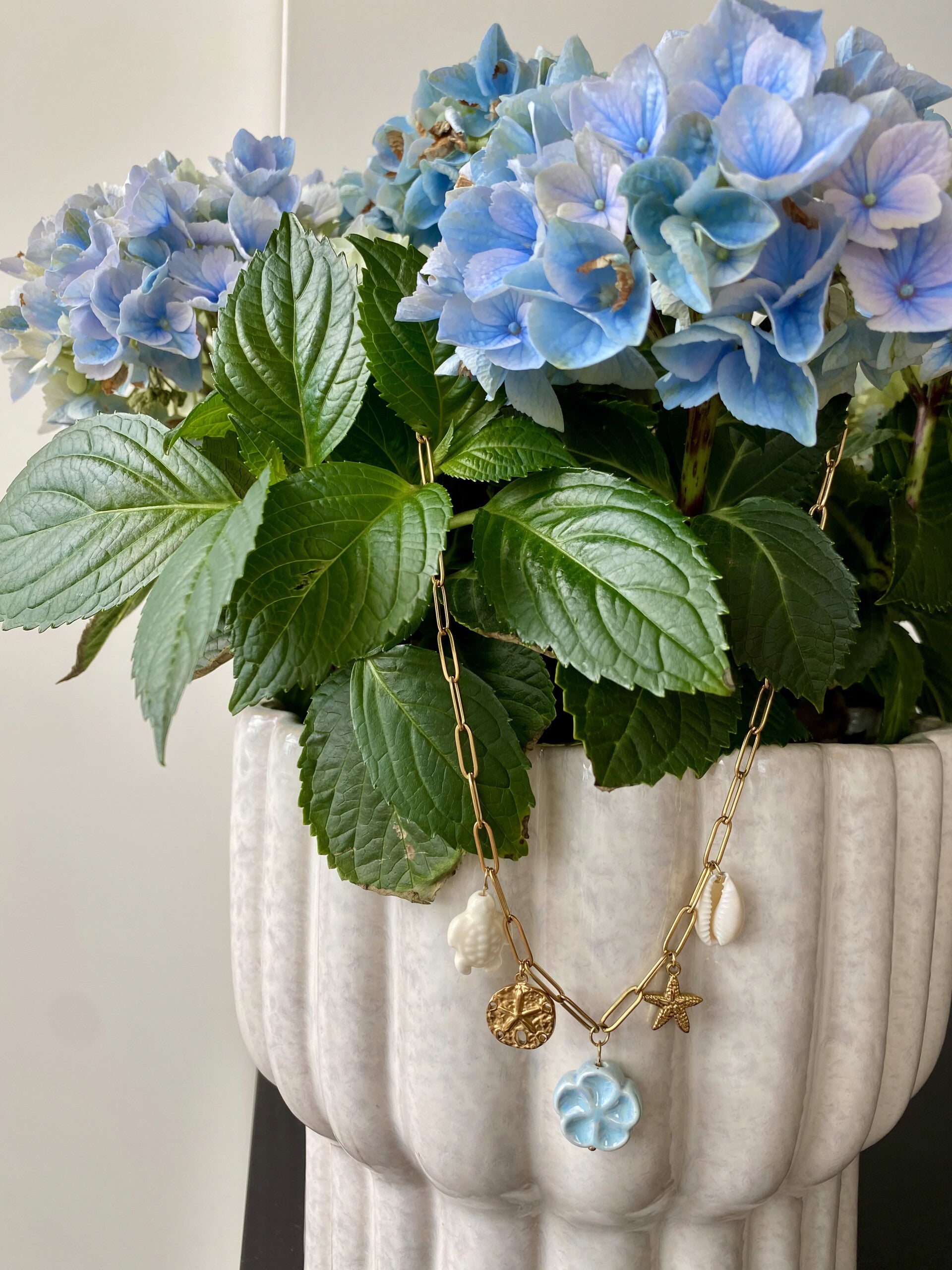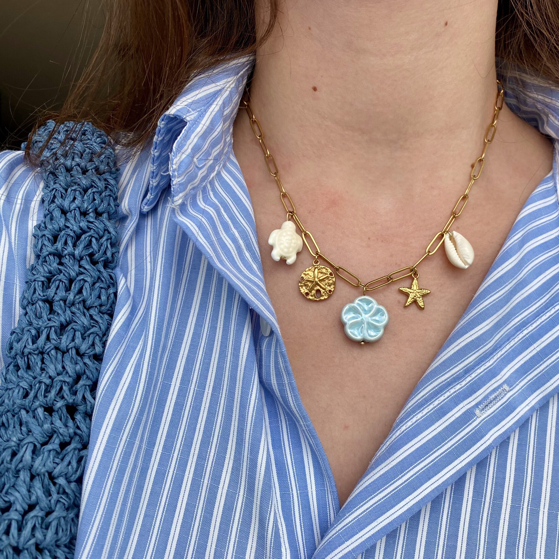Paperclip-ketting. Volledig stainless steel. Met 5 bedels. In doosje.