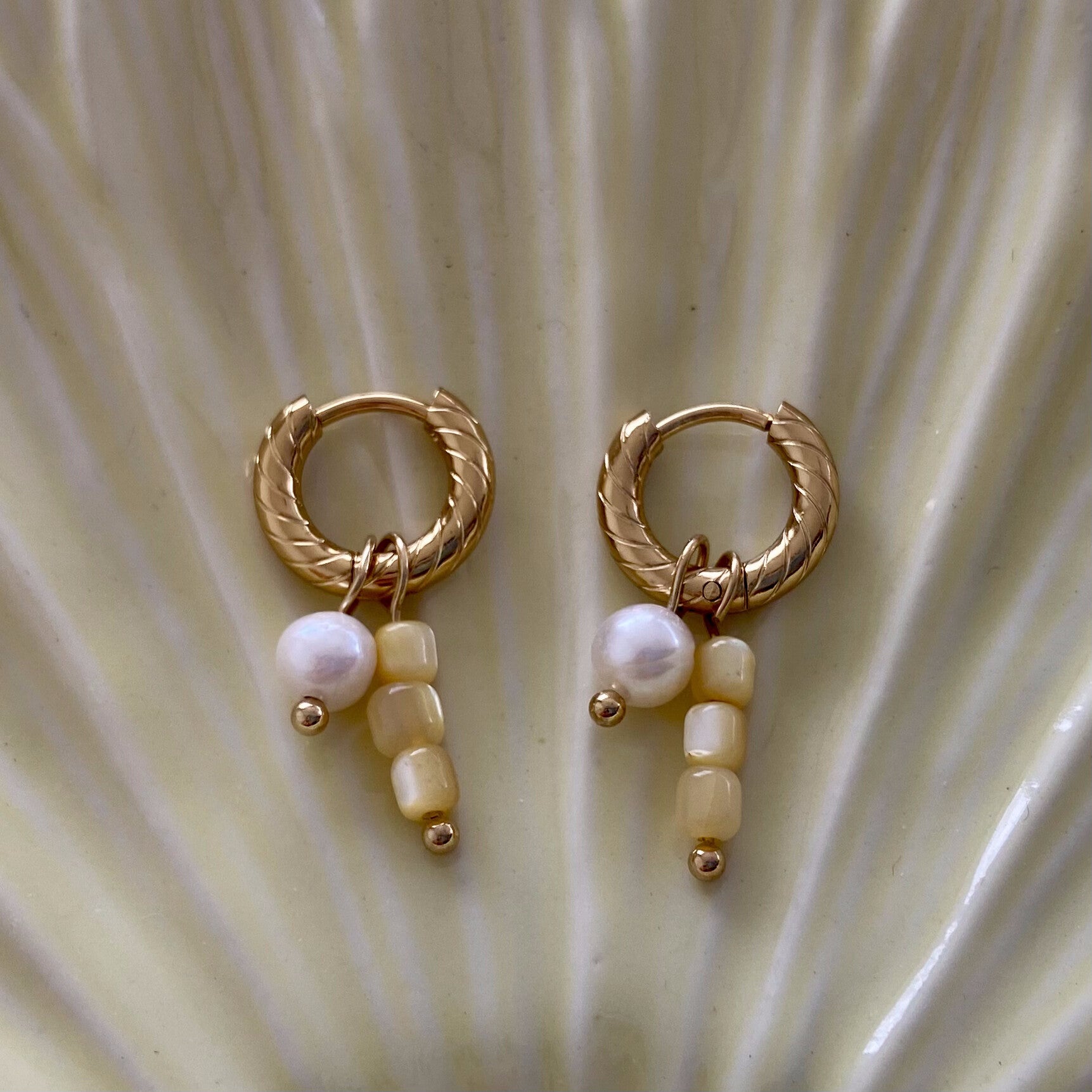 Stainless steel en zoetwater-parels.