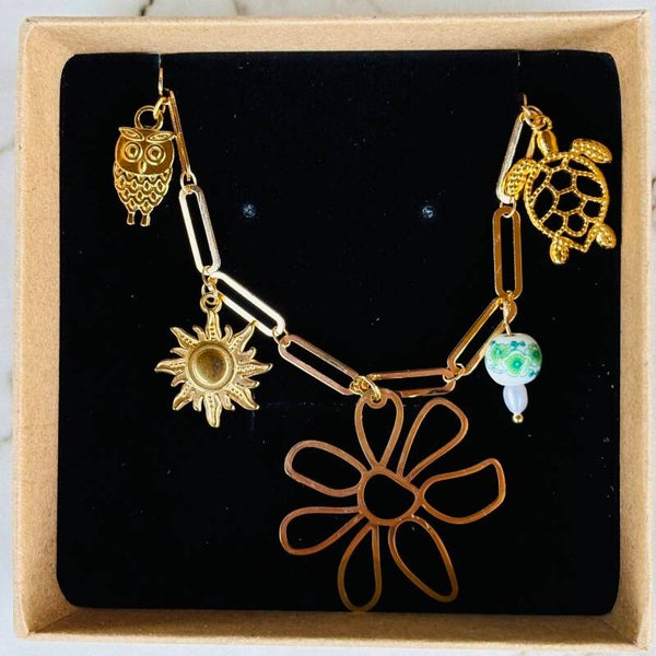 Paperclip-ketting. Volledig stainless steel. Met 5 bedels.